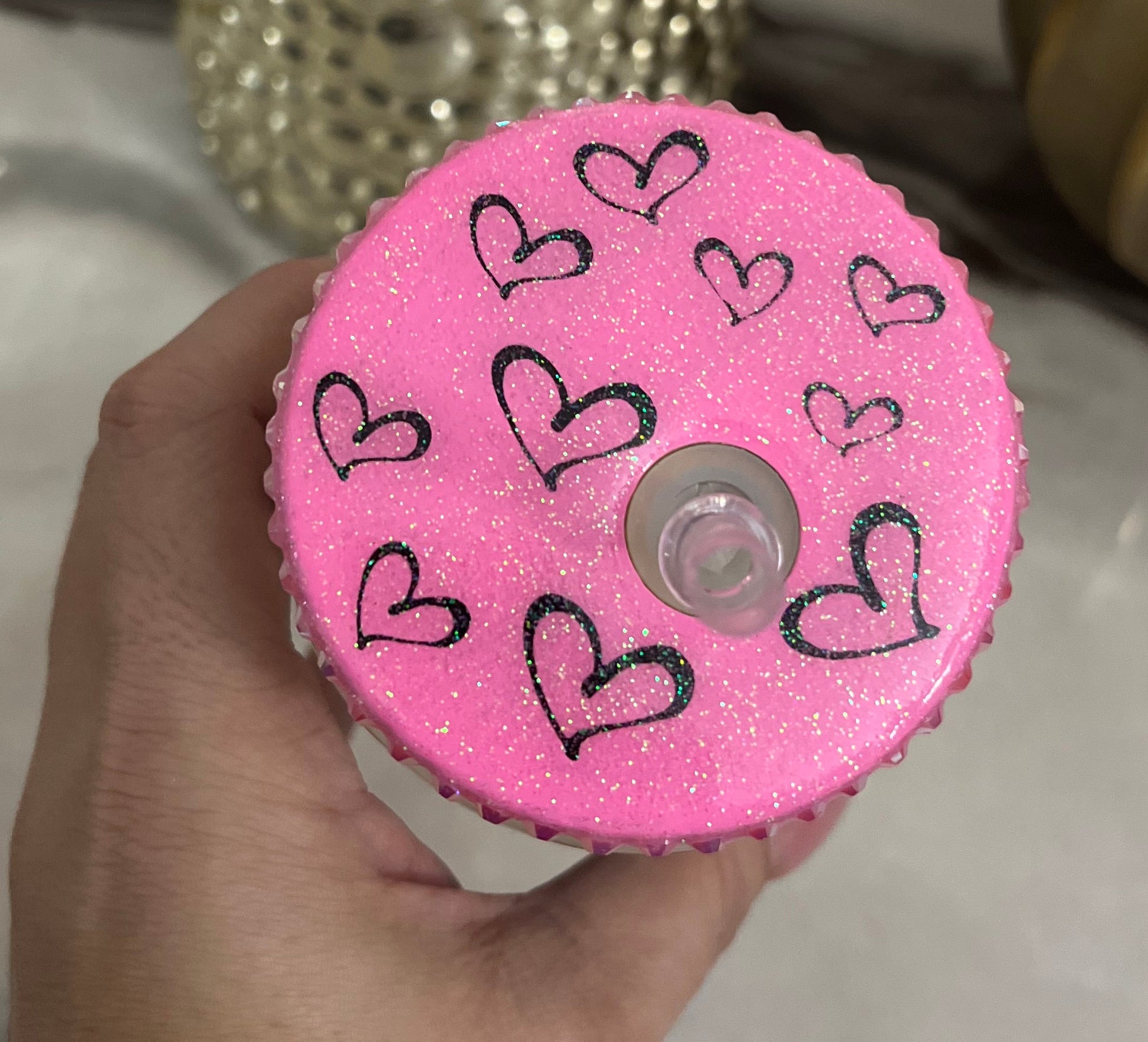 This 16oz Libby glass cup features the playful āNo You Hang Upā design with a spooky-cute Valentine twist, paired with a custom lid an adorable straw topper to complete the look.